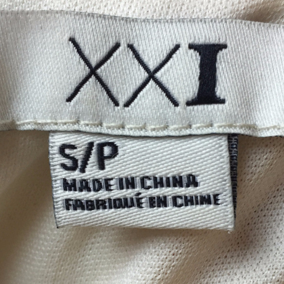 Ivory dress with feather print. Round neckline. Sleeveless. Pleated chiffon skirt. Knee length. Worn by Tiffany in her "Secrets" music video w/ Piano Guys.